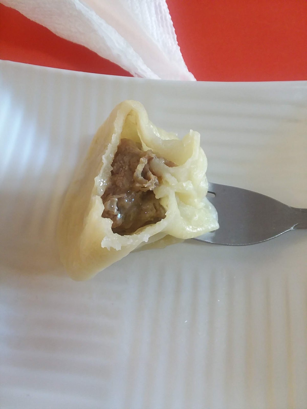 | Oh, look inside that vegan dumpling. |
