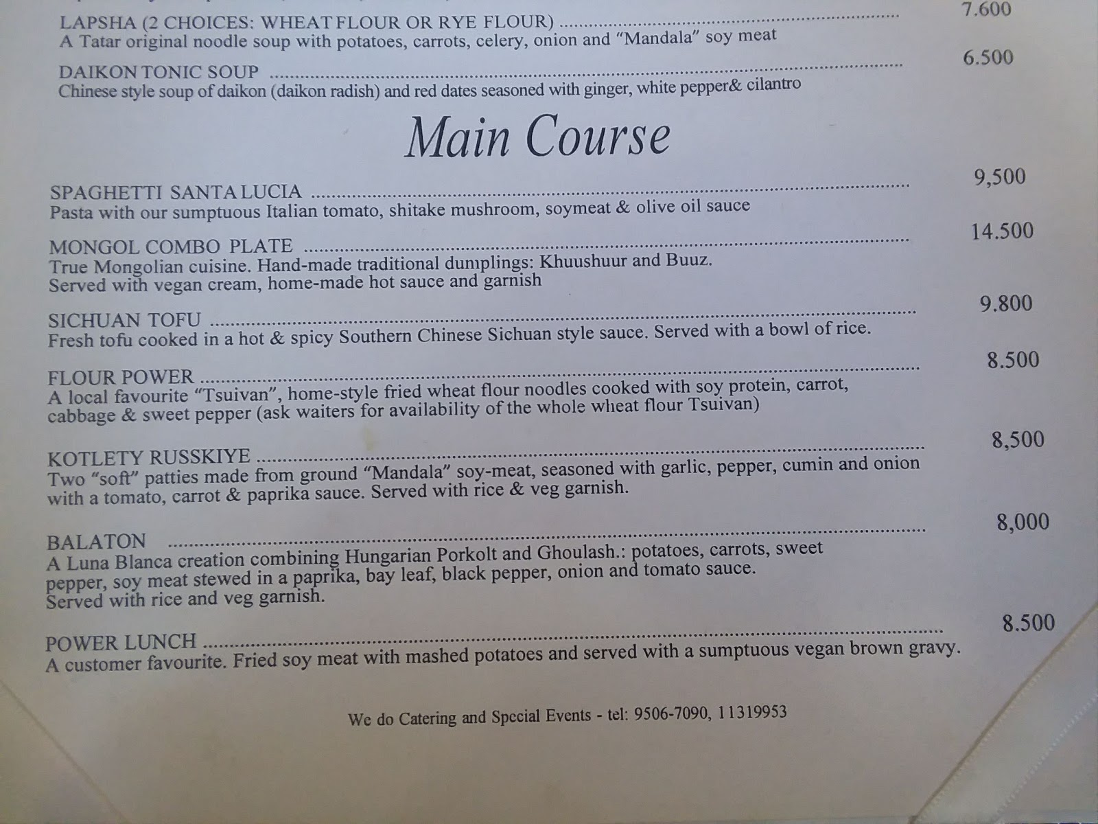 Luna Blanca Vegan Restaurant in Ulaanbaatar. Sure, it was in a Buddhist center, but still. I was utterly shocked. I had to go in and check it out!